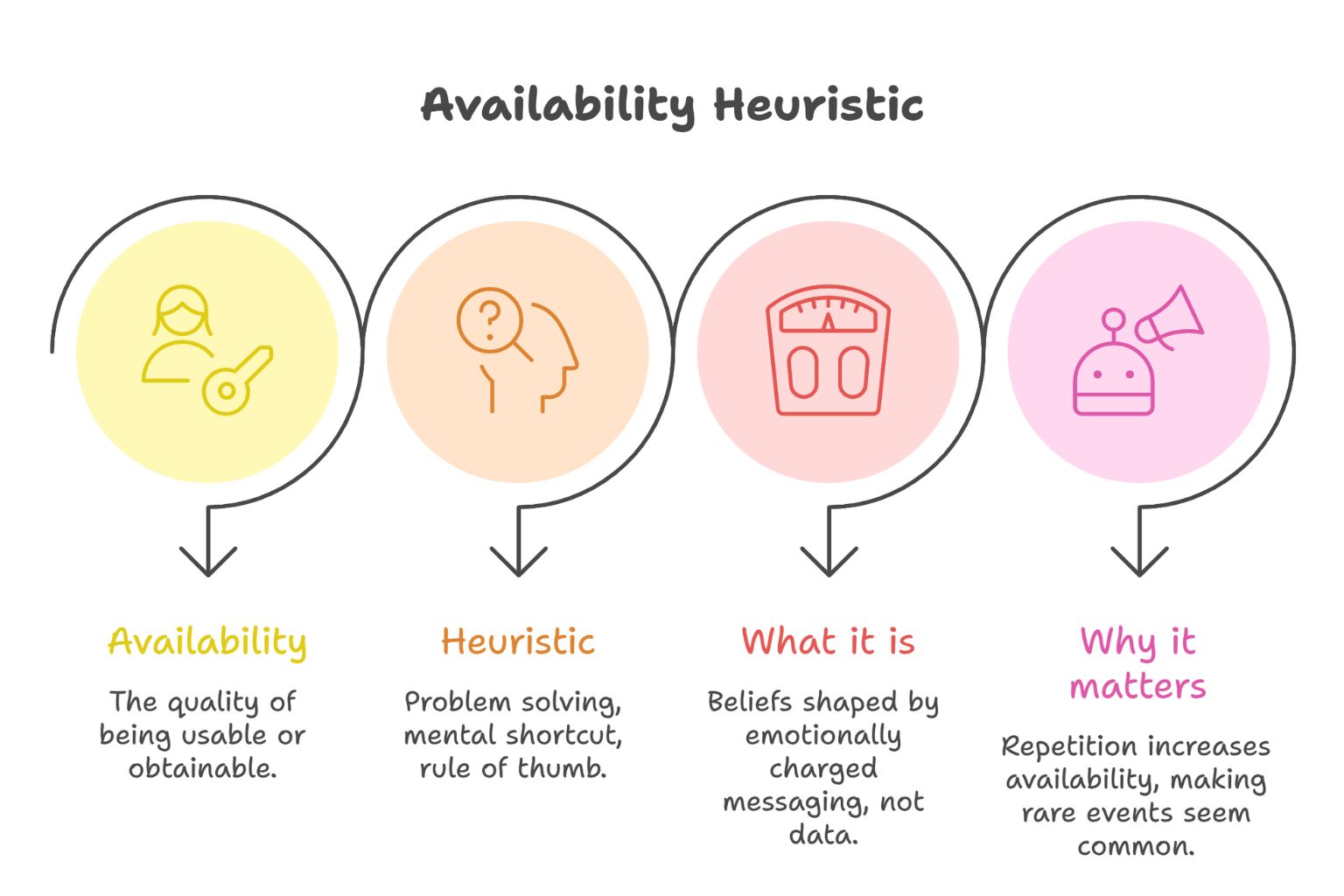 Repetition increases ‘availability’ in our mind. If you see something ten times, it feels common, even if in reality, it is rare.