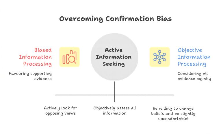 Confirmation bias is the tendency to notice, favour, and remember information that supports what we already believe, while overlooking or discounting what does not